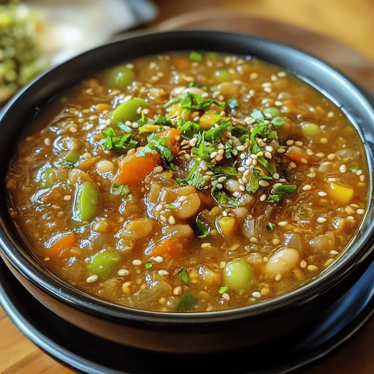 Cook thin rice noodles separately and serve the stew over them. Top with sliced green onions, a dash of sesame oil, and a sprinkle of toasted sesame seeds. The noodles absorb the broth and add a chewy texture that enhances the dish.