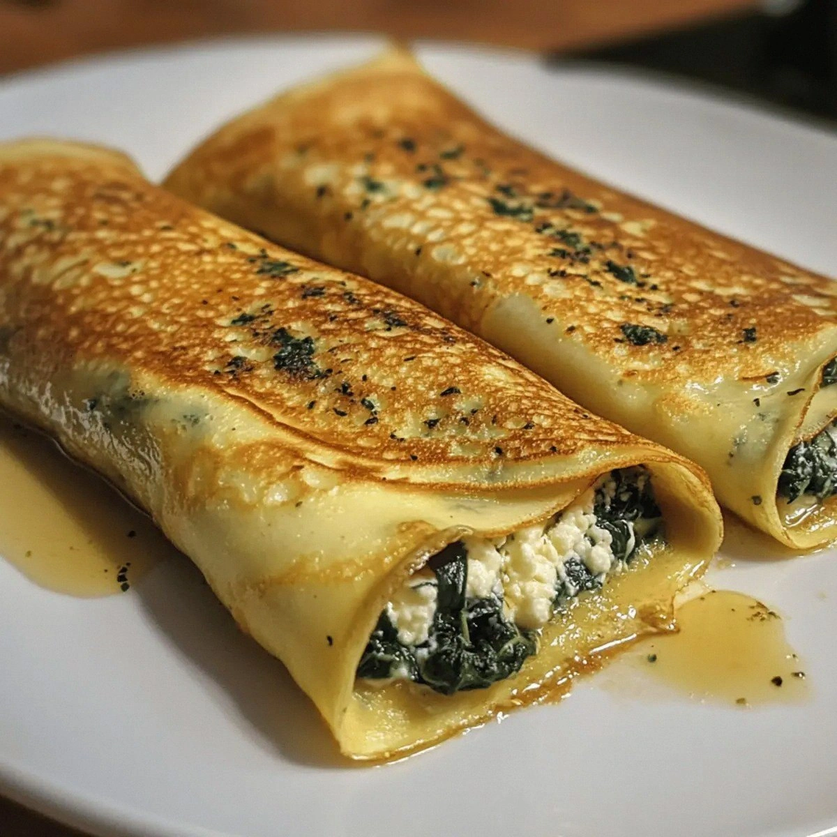 Add diced jalapeños and a pinch of cumin to the spinach mixture. Top the baked crepes with a dollop of sour cream and a sprinkle of shredded cheddar. This spicy, cheesy version turns the dish into a bold, fiesta‑ready appetizer.